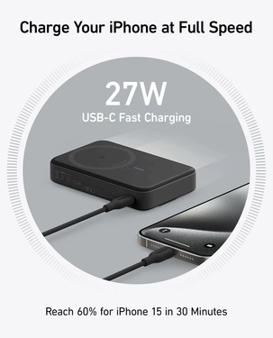 | Box Content: | Anker MagGo PowerBank 15W 10000mAh Ultra-Fast Magnetic Charging with Smart Display, USB Type-C to Type-C charging cable 2ft 0.6m |