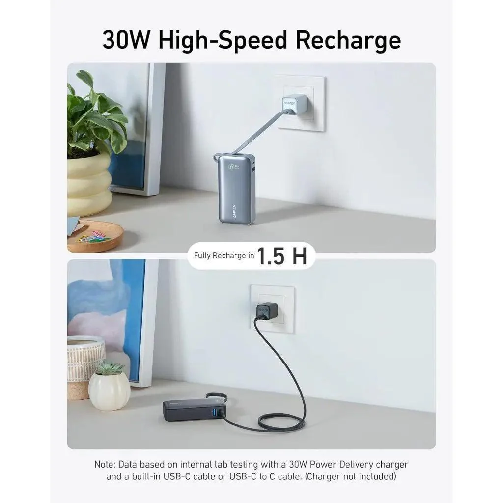Anker Nano Power Bank (30W, Built-In USB-C Cable) Lightweight With for iPhone 16/15 Series, MacBook, Galaxy, iPad, and More
